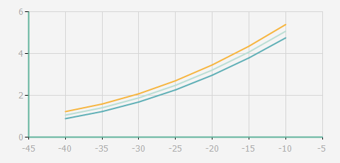 | 蒸發(fā)溫度 | 制冷量+/-5% | 能耗+/-5% | 現(xiàn)在能效+/-5% | 氣體流速+/-5% | 能效+/-7% | ||||
