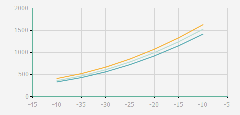 | 蒸發(fā)溫度 | 制冷量+/-5% | 能耗+/-5% | 現(xiàn)在能效+/-5% | 氣體流速+/-5% | 能效+/-7% | ||||
