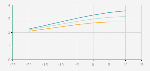 | 蒸發溫度 | 制冷量+/-5% | 能耗+/-5% | 現在能效+/-5% | 氣體流速+/-5% | 能效+/-7% | ||||