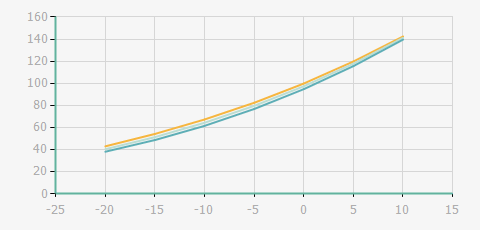 | 蒸發(fā)溫度 | 制冷量+/-5% | 能耗+/-5% | 現(xiàn)在能效+/-5% | 氣體流速+/-5% | 能效+/-7% | ||||